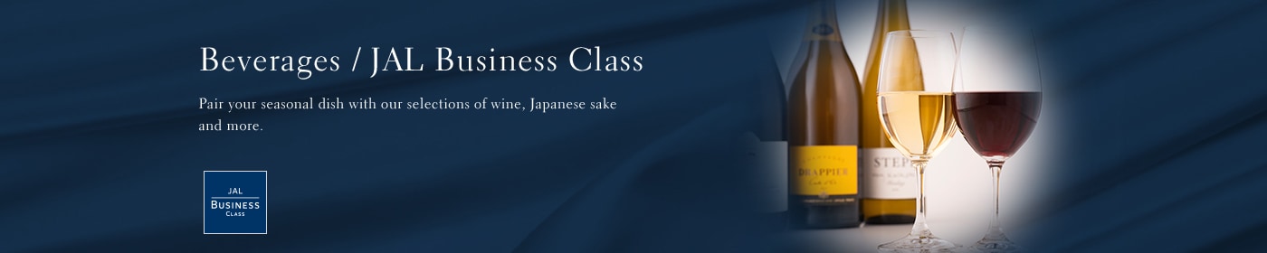JAL Business Class offers a selection of fine wines from around the world for your enjoyment, Pair them with our world-class cuisine for a truly exquisite dining experience.