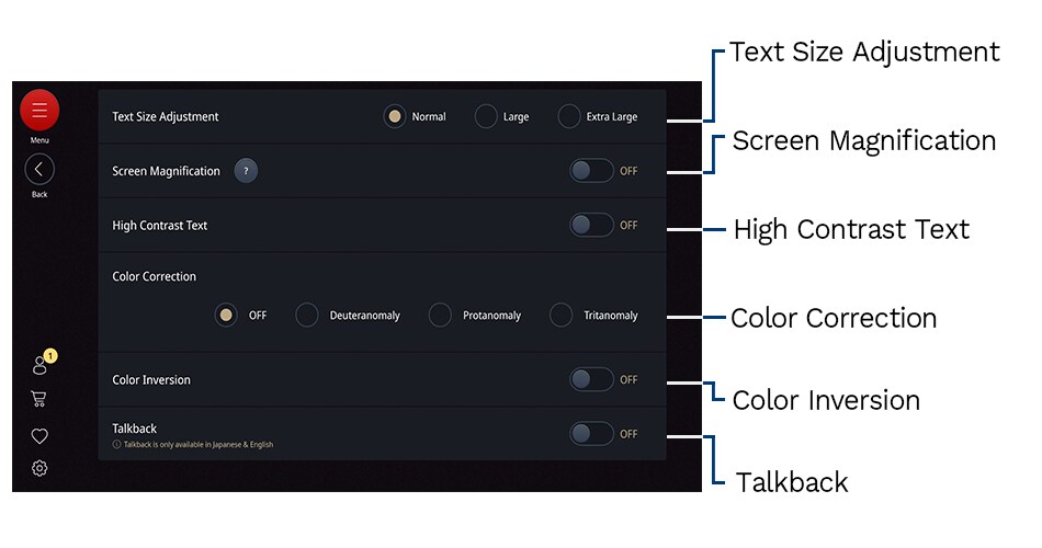 - This is a function to change the text size. You can choose from 3 levels: Normal, Large, and Extra Large.