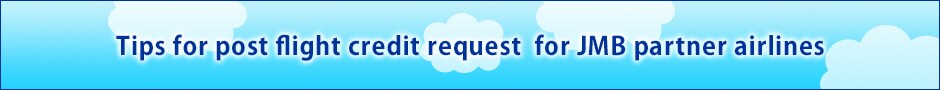 If you were unable to take necessary steps to accumulate mileage before your flight, you may request post flight credit for JAL international flights and JMB partner airline's flights through the website.