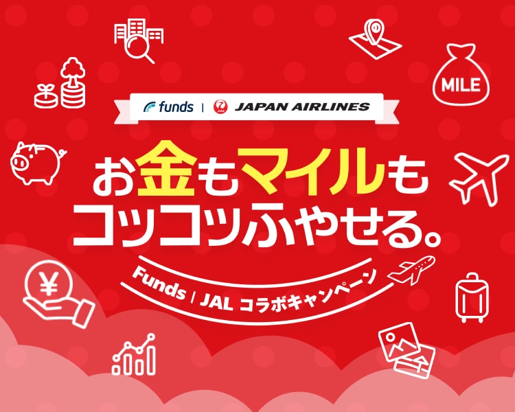 本ページ経由で初めてFundsの口座開設を完了いただいた方に500マイルをプレゼントいたします。