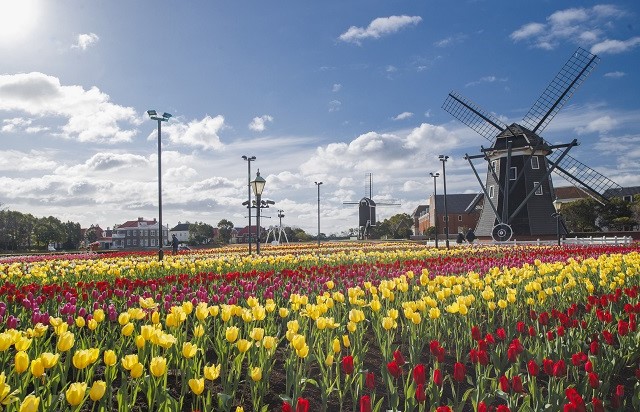 春のハウステンボスはチューリップやバラが咲き誇り、園内が華やかに彩られます。