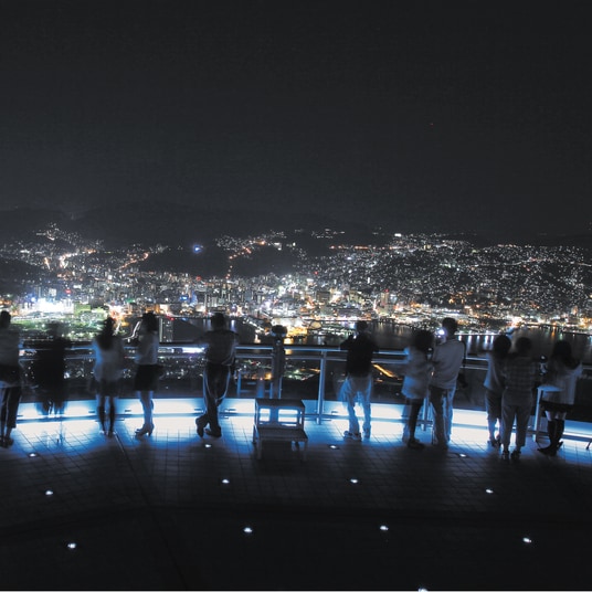 長崎の街を見渡せる、夜景スポットとしても有名。晴れた日には、雲仙、天草、五島列島まで眺めることができる。