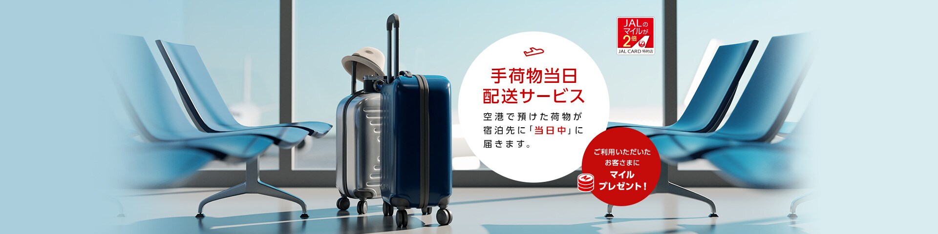 当サイト下段「サービスお申し込みはこちら」から予約・決済。利用日当日、カウンター設置の専用タブレット端末に申し込み番号を入力。印刷される配送ラベルを荷物に貼付しカウンターで預け入れ。 預け入れ:羽田空港第1ターミナルビル1階JAL ABCカウンター 受け取り:ご指定の宿泊先ホテル