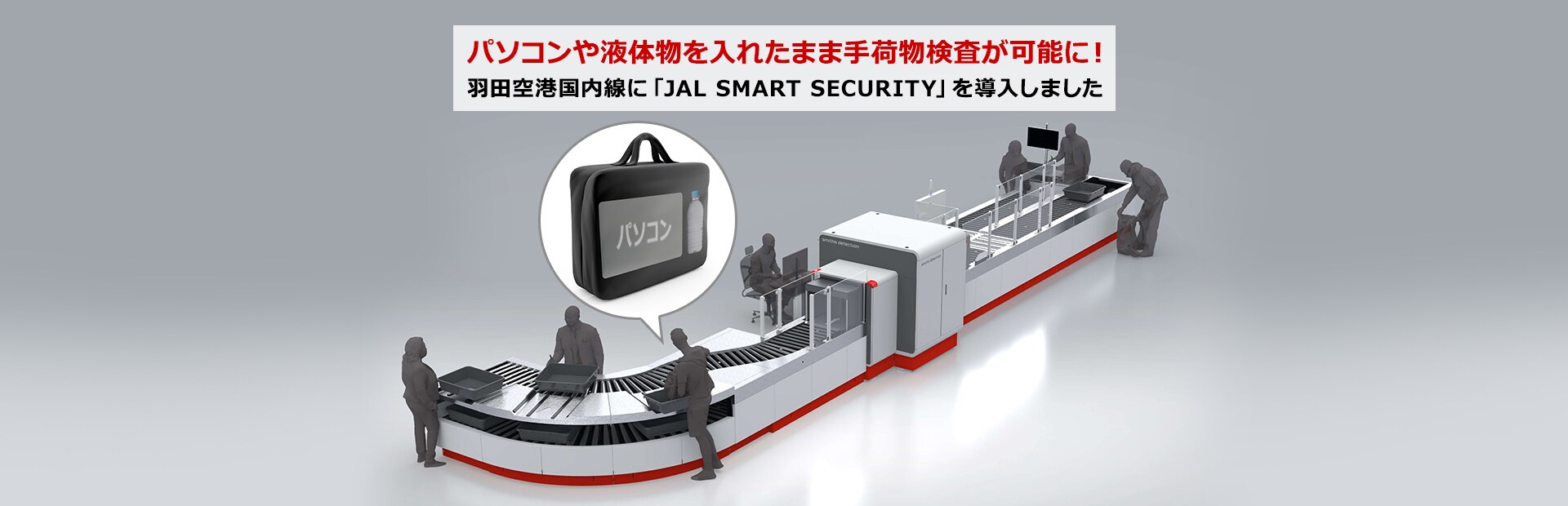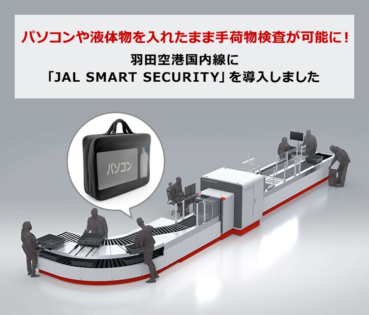 高度化された保安検査装置(X線CT検査装置)の導入により、お手荷物からパソコンや液体物を取り出すことなく手荷物検査が可能となります*。