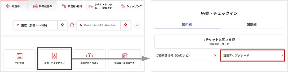 当日アップグレード料金と、予約便の変更によるクラス変更は料金が異なる場合があります。