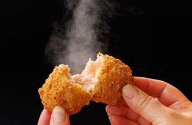 中身の3分の1は境港産紅ズワイガニという贅沢なかにクリームコロッケです。島根県産の牛乳を使用し、濃厚なクリームに仕上げております。