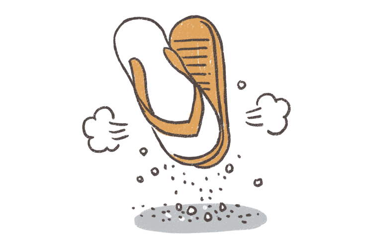 海岸以外の場所では水着や露出の多い服装は受け入れられません。お店や食堂、交通機関に濡れたり砂のついた状態で入ると清掃の負担がかかります。はきものに砂がついていないか注意をはらいましょう。