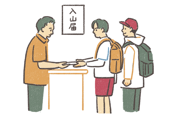 生物の多様性にあふれる山は魅力的ですが、救助や手当をする体制もほぼありません。安全な装備を手に入れ、二人以上でなければ登山は避けるべきです。生物や植物は見るだけに。捕獲・採取は場所、種類によっては法令に触れます。また、入山届や、国有林の場合は入林届など手続きがあります。