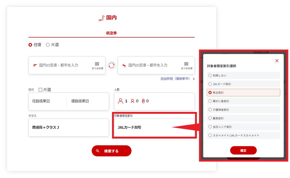 航空券の発行日、および発行日の翌日から起算して1年間または、「株主割引券」に記載された有効期間のいずれか短い方が有効です。