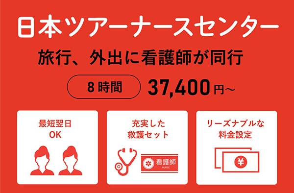 結婚式、旅行、転院、長距離移動、お墓参り、団体旅行など、個人・団体を問わず、日本ツアーナースセンターの看護師が同行し「安心と思い出」をお届けします。
