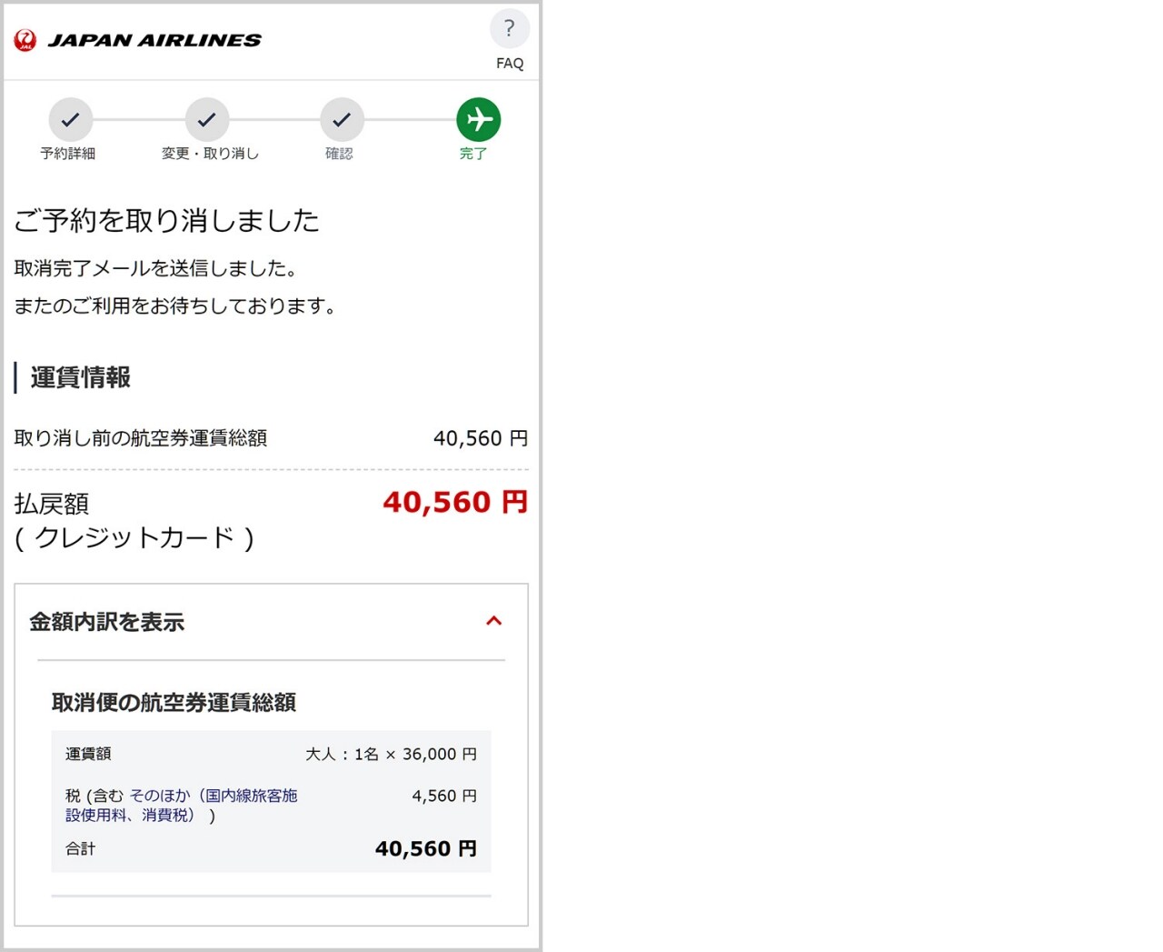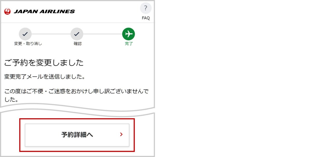 搭乗方法の確認や、取り消し・払い戻しをご希望の場合はこの画面の「予約詳細」をクリックまたはタップしてもう一度予約詳細を表示させます。