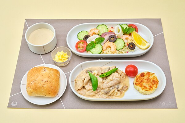 「フランスを旅するように」そんな想いを込めて、フランスの北部、中部、南部の地方料理をテーマにした3つのメニューを作りました。各地方を代表する料理を機上で楽しんでいただける仕立てに。周遊の旅のごとく、フランスの異なる郷土の料理をご堪能ください。