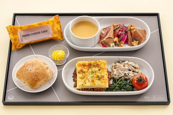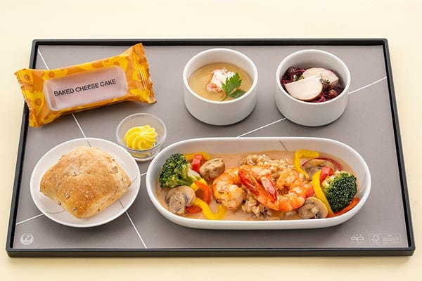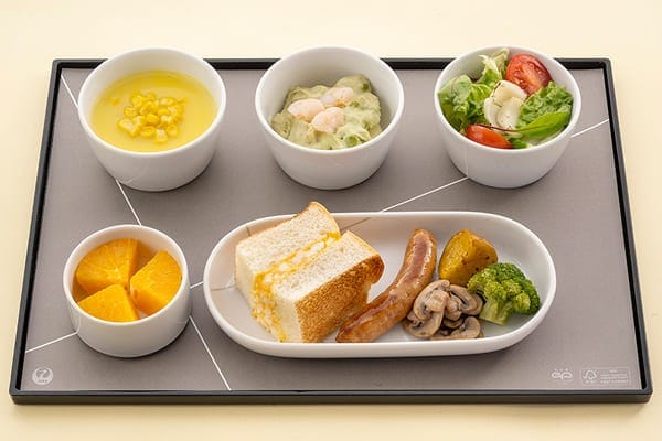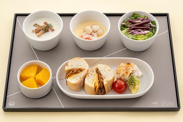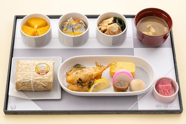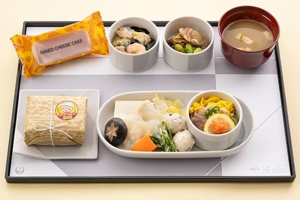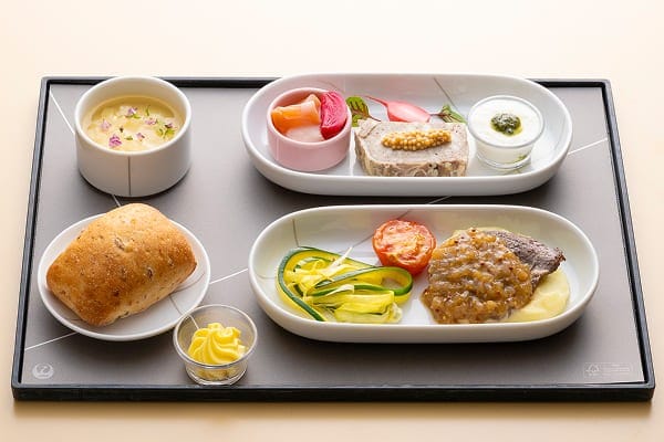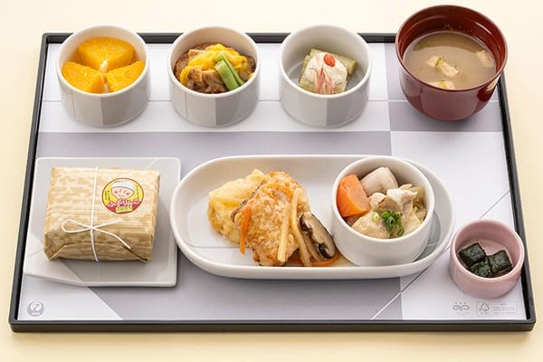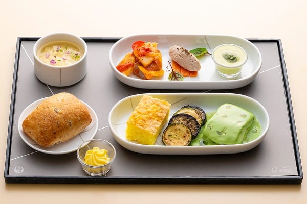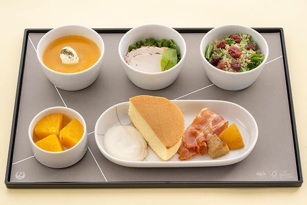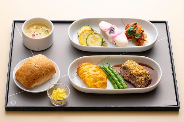 ご搭乗いただく飛行機の出発時刻に応じてご朝食、ご昼食、ご夕食をご用意いたします。ご夕食は、日本各地の食の匠が監修した価値ある味覚をご用意しました。