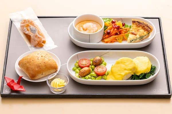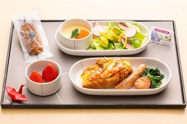 ご搭乗いただく飛行機の出発時刻に応じてお食事をご用意いたします。