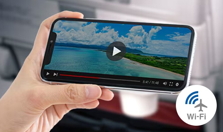 Wi-Fi無料コンテンツおよび機内エンターテインメントプログラムをご案内します。