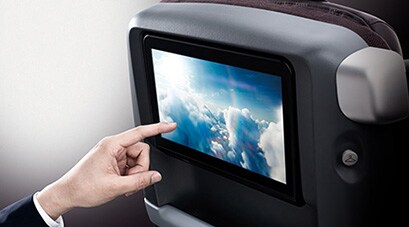 A350や787の各席には個人用画面があり、機内エンターテインメントをお楽しみいただけます。