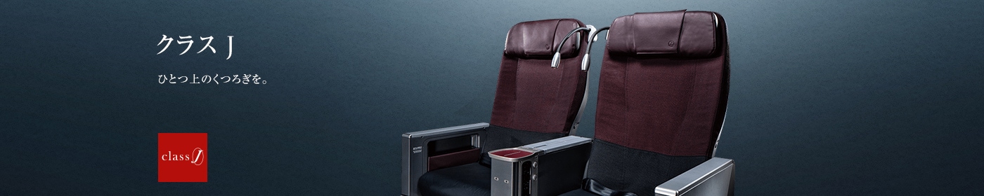 「クラス J」はファーストクラスと普通席の中間クラスの座席です。お気軽にくつろぎの空間をお楽しみいただけます。