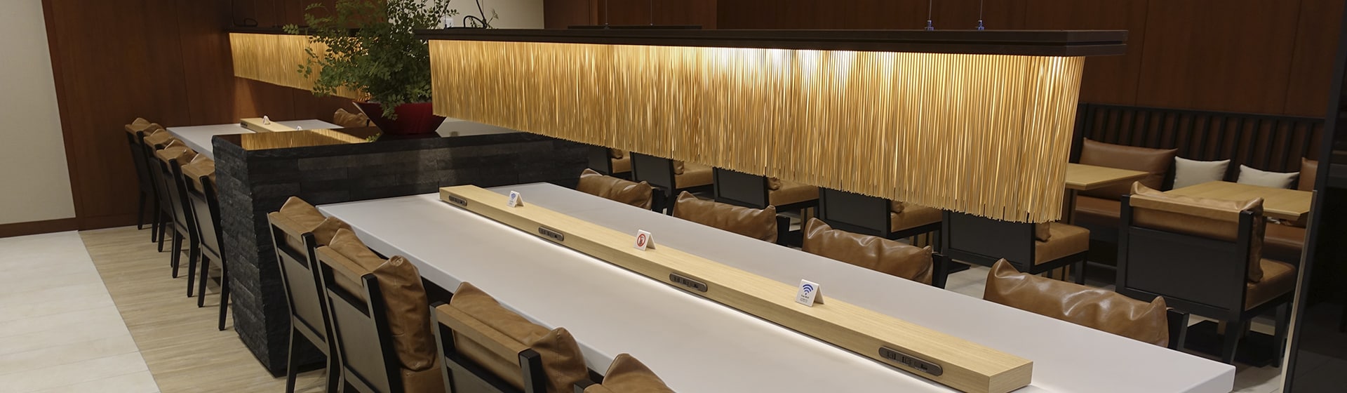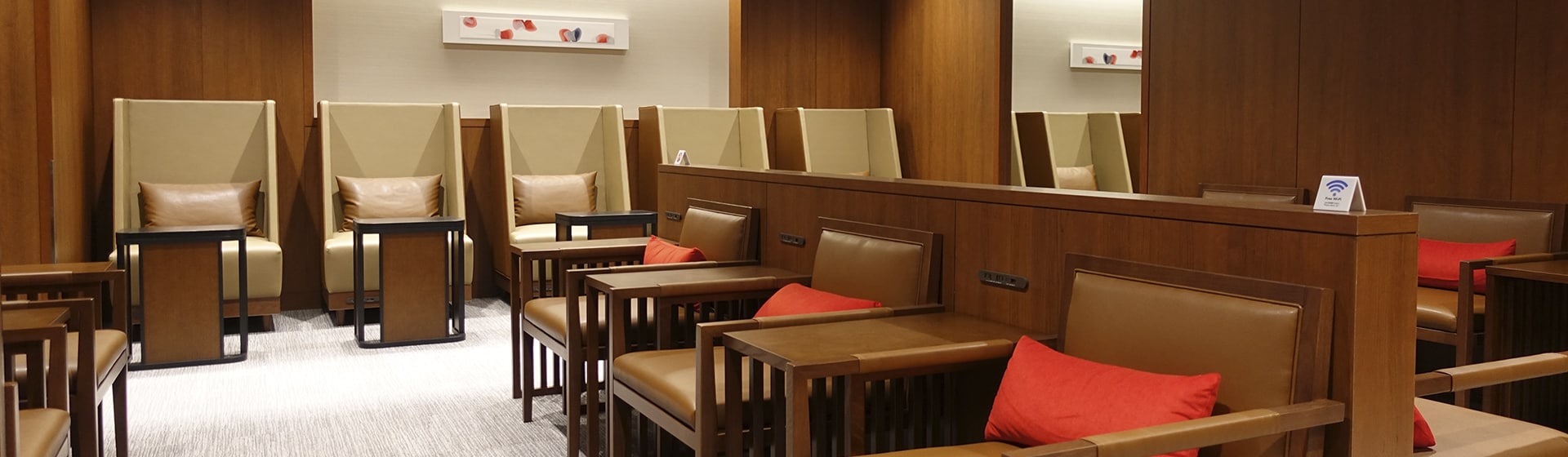和の素材の風合いを取り入れた上質で洗練された空間。個々の座席では、収納という機能とプライベート感の確保を重視。過ごし方に応じた多様な空間を設定。