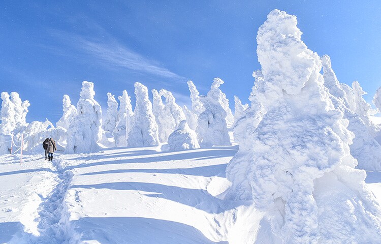ゴンドラからの空中散歩、初心者でも安心の樹氷見学ができます。