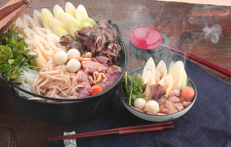 米どころ秋田の郷土料理。きりたんぽを鶏ガラのだし汁で煮込んだ鍋。