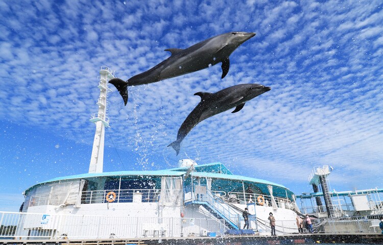 届きそうな距離で、泳ぐイルカの群れを観察することができます。