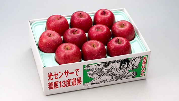 太陽の光をたくさん浴びたサンふじは糖度が高くなり、旨味がぎっしり詰まったりんごです。さらに光センサーで糖度を測定し、13度選果の無袋栽培のふじりんごをお届けいたします。