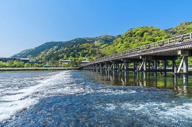 5月の嵐山は、新緑が美しい季節です。「竹林の小径」は京都を代表する観光名所です。緑に囲まれた爽やかな景色を楽しめます。