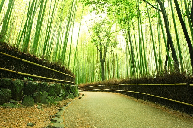 この時期の京都は、しっとり濡れて鮮やかさを増す青もみじや苔を楽しめます。渡月橋や天龍寺、竹林の小道は新緑が生き生きし、この時期ならではの風景を味わえます。