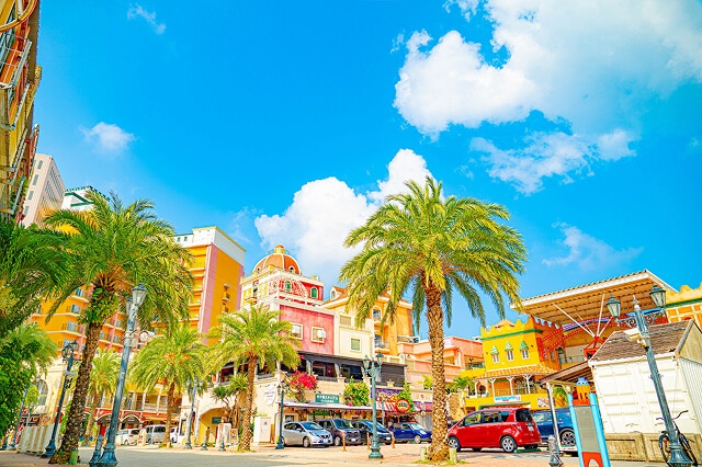 街中には可愛い写真映えスポットやお洒落なカフェが点在し、ショッピングもレジャーも楽しめる場所です。