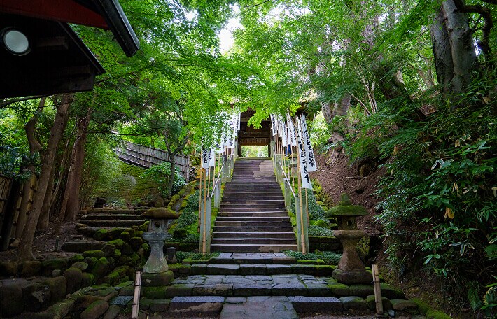 金沢にある茶屋街のひとつ、石畳に沿って殻格子のお茶屋さんが並ぶ風情のある通は江戸時代を思わせます。