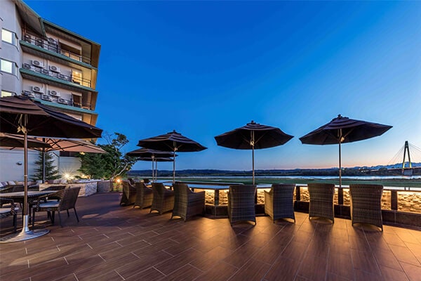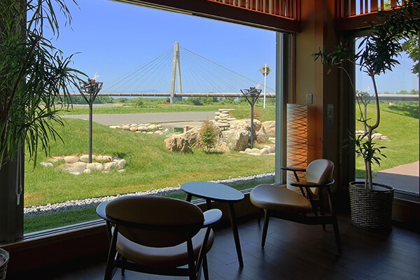十勝川沿いに佇む和モダンのホテル。圧巻の大浴場はもちろん、十勝産の新鮮な食材を使用した夕食や朝食で提供される自家製の焼きたてパンは「これを目当てに来る」というファンも多い逸品です。