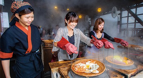 100度の温泉で食材を蒸し上げる鉄輪名物「地獄蒸し」はヘルシーでおすすめ。食材はその場でも調達できるため、手ぶらでOKです。