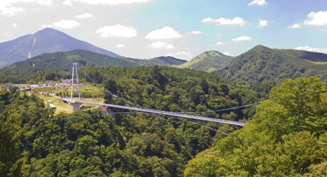 観光タクシーで九重“夢”大吊橋に立ち寄り由布院へ向かいます(1台4名まで乗車可)。長さ390m、高さ173mの吊り橋から見えるのは360度の絶景パノラマ。足がすくむようなスリリングな体験はいかがですか?午前は黒川~由布院間の絶景ドライブを午後は由布院の自由散策をお楽しみください。