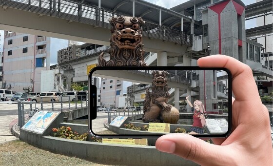 お散歩ナビで案内してくれたメンバーのARは、各スポットのチェックイン後取得でき、取得後は沖縄本島内のご旅行中であれば、そのメンバーをいつでも出せるようになります。