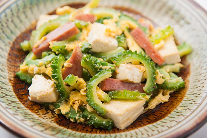インドネシア語の「チャンプール=混ぜる」が語源とも言われており、交易のあった中国・東南アジアの調理法の影響を受け、沖縄の食材を使用して作られた伝統的な料理です。