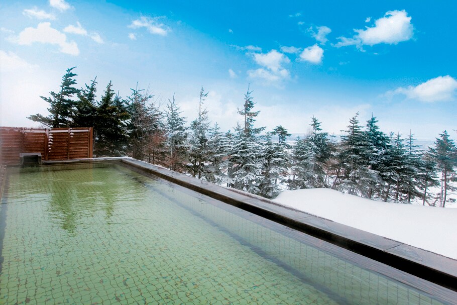 岩木山と日本海を一望できる高原のロケーション。津軽平野と日本海を望むことができる大浴場は見晴らし抜群です。