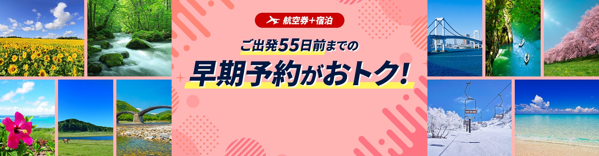 空席・空室状況により旅行代金が変動するため、空席が比較的多い”早めの予約” がおすすめ!