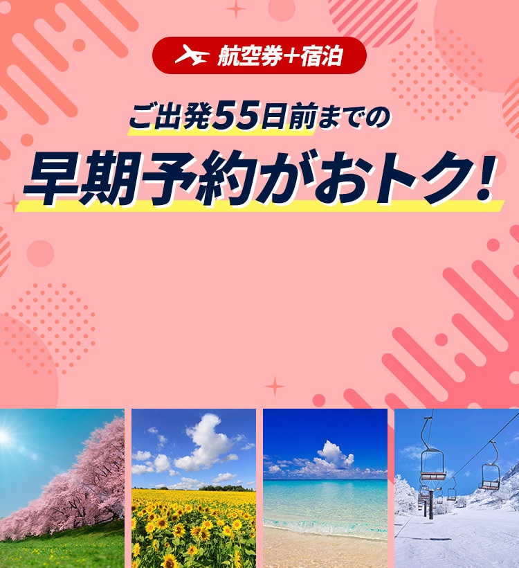 対象のお客さま:対象出発期間のご予約を、ご出発の55日前までにご予約されるJMB会員のお客さま