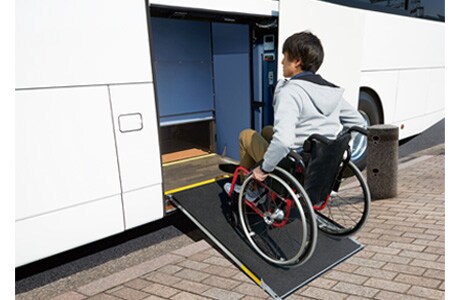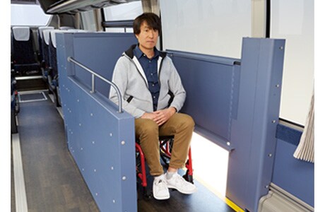 エレベーター付きバスは、バス車内にエレベーターが設置されており、スムーズな車内での昇降、雨風の影響を受けない快適な乗車を可能にしました。