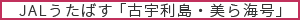 | 3日目 | JALうたばす「古宇利島・美ら海号」をお楽しみください。 ホテル〔9:30頃出発〕*▶古宇利大橋(車窓通過)▶古宇利ビーチ散策▶古宇利オーシャンタワー▶海洋博公園(沖縄美ら海水族館)または備瀬のフクギ並木▶ホテル〔17:20頃着〕 |
