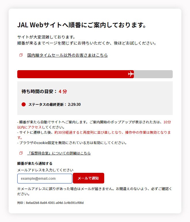 - 約30分が経過すると再度仮想待合室に並び直しとなり、操作中の作業もすべて無効となります。
