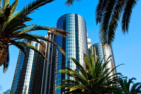 ダウンタウンのリトル東京にあるデラックスホテル、地下鉄の駅までも徒歩圏内と便利な立地です。