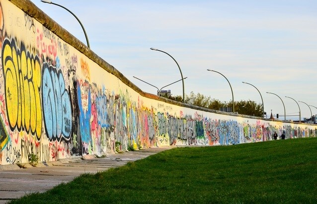 約28年にわたり築かれたベルリン分断の壁。全長約155kmの壁は、イースト・サイドの壁の一部だけ残されて、オープンギャラリーとなっています。