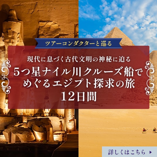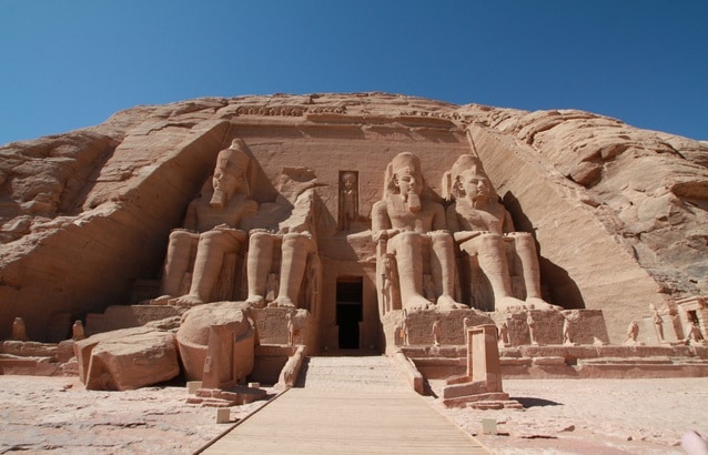 エジプト南部にあり、岩山をくり抜いて造られた古代遺跡。大神殿には高さ約20メートルの巨大なラムセス2世像が並び、その迫力は圧巻です。