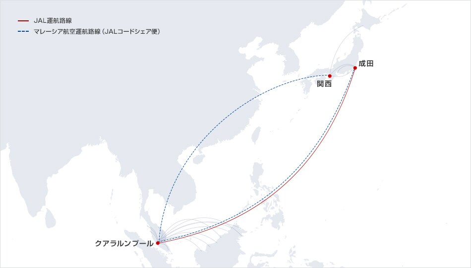現在、2社合わせて、成田国際空港、関西国際空港の2地点からクアラルンプールへの直行便を運航中。