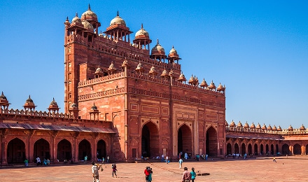 インドの古都アグラ近郊にあるムガル帝国の都の遺跡。イスラムとヒンドゥー双方の様式が融合した、ムガル建築独特の建造物が400年以上経った今でも状態良く保存されています。