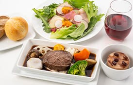 機内食でお楽しみいただけるアラカルトメニューをバラエティー豊かに(最大13種類)ご用意しております。