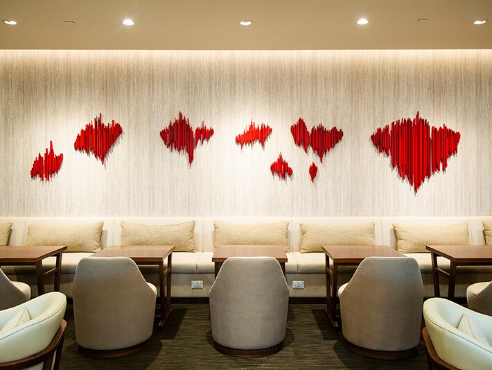 「JAL Hawaii」をイメージしたアートワークが印象的なラウンジエリアは、ご家族でもお寛ぎいただけます。