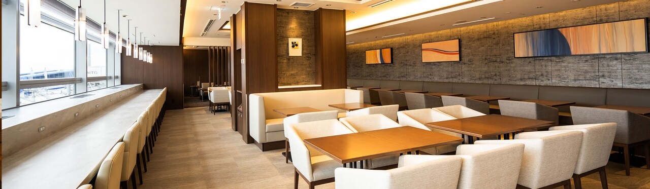飛行機を眺めながら快適なラウンジでのお時間をお過ごしください。