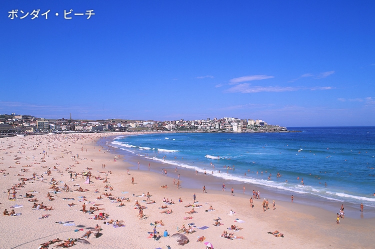 ボンダイ・ビーチ:シドニーの中心からわずか20分~30分ほどの場所に位置する人気のビーチです。近くには雰囲気のよいカフェやレストランが立ち並びます。